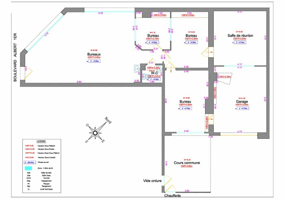 A louer local commercial en angle idéalement situé sur le boulevard Albert 1er au centre-ville d'Antibes. Surface: 105 m². Surface de vente de 45 m². 4 bureaux. Loué avec un garage fermé de 22 m² actuellement aménagé en réserve et accessible depuis le local. Sanitaires. Climatisation. Baie de brassage. Accès PMR. Hauteur sous plafond de 2,85 mètres. Linéaire vitrine de 13 mètres. Très bon état général. Pas de restauration. Idéal agence de services, cabinet médical, showroom. Bail commercial, dérogatoire ou professionnel. Loyer CC: 3875 Euros HT/mois