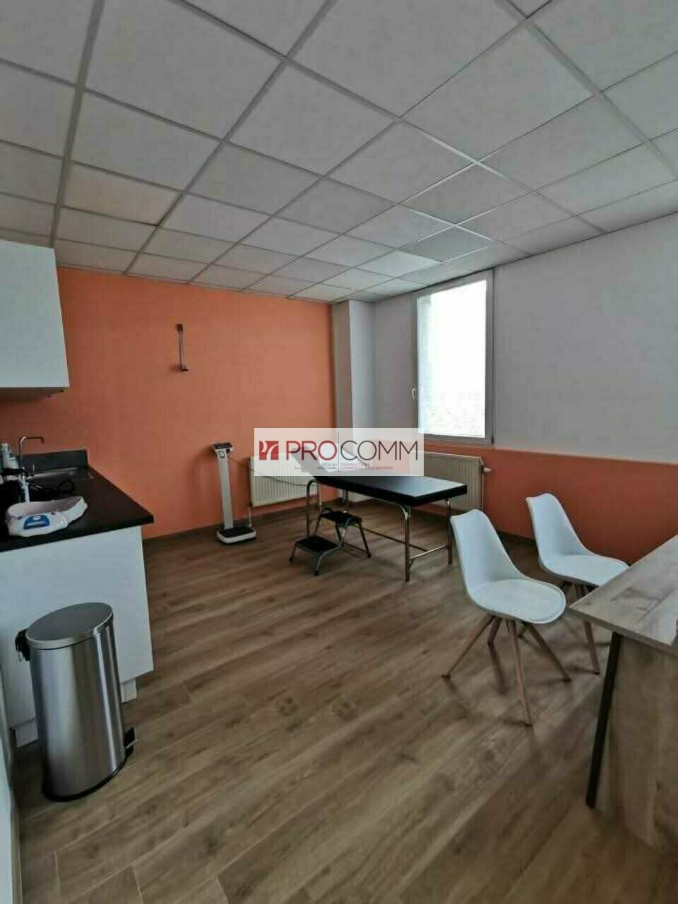 Le plateau est composé d'un premier bureau de 23.65m², un deuxième bureau de 23.65m², un troisième bureau de 19.85m², un secrétariat de 11.45m², une salle d'attente de 20.55m², sanitaire privatif.