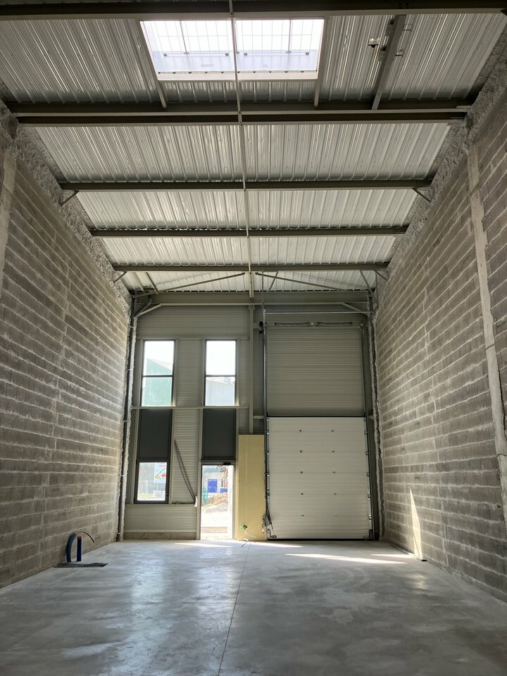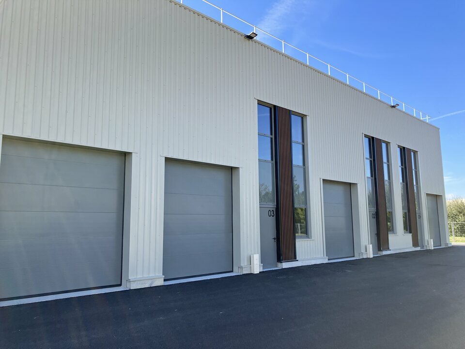 Les locaux sont équipés d'une porte sectionnelle. Ils sont livrés brut et bénéficient d'une très belle hauteur sous panne de 6.88 m.