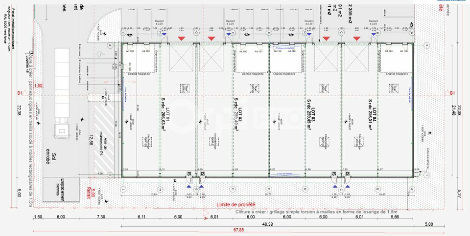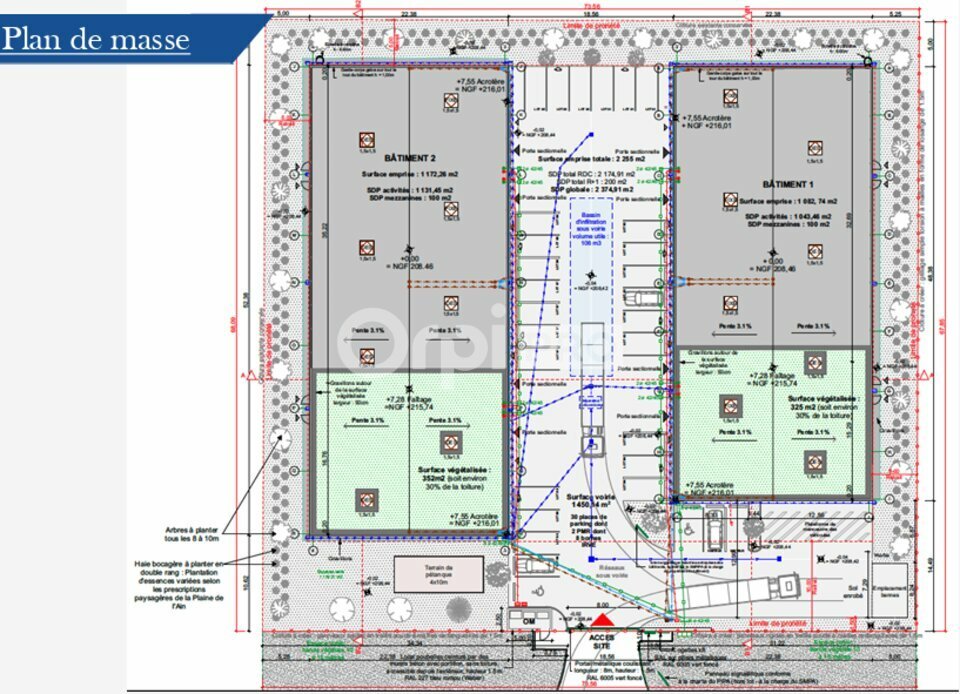 ORPI PRO vous propose à la vente ou à la location, un parc d'activités de 5 locaux, allant de 284.36 m² à 328.32 m², comprenant dans chaque lot une mezzanine brute de 25 m².