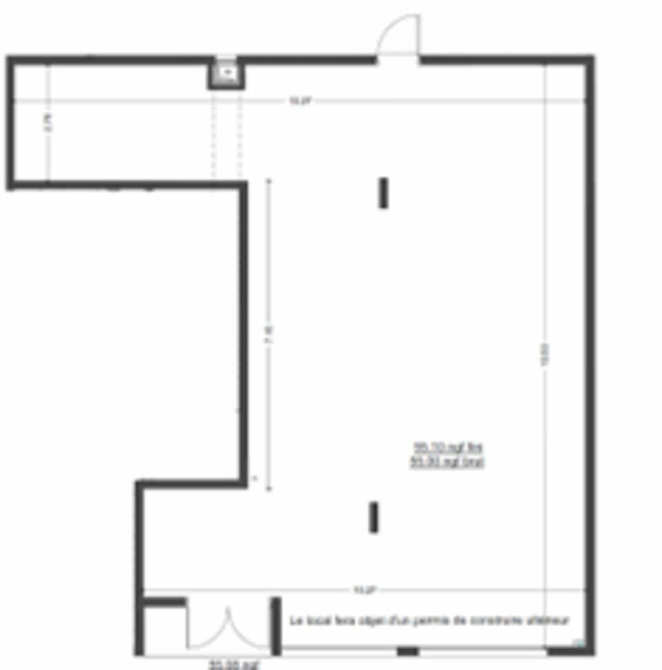La configuration du plateau permet d'envisager un espace de vente ou d'accueil spacieux, complété par des zones techniques pouvant accueillir réserve, sanitaires ou bureaux selon les besoins.