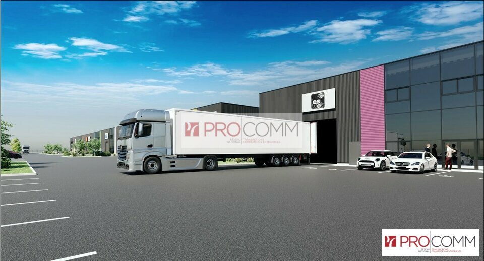 401 m² de surface d'activité équipée d'une porte sectionnelle.(4x4.5), suspension LED, dallage industriel supportant une charge de 2 tonnes/m².