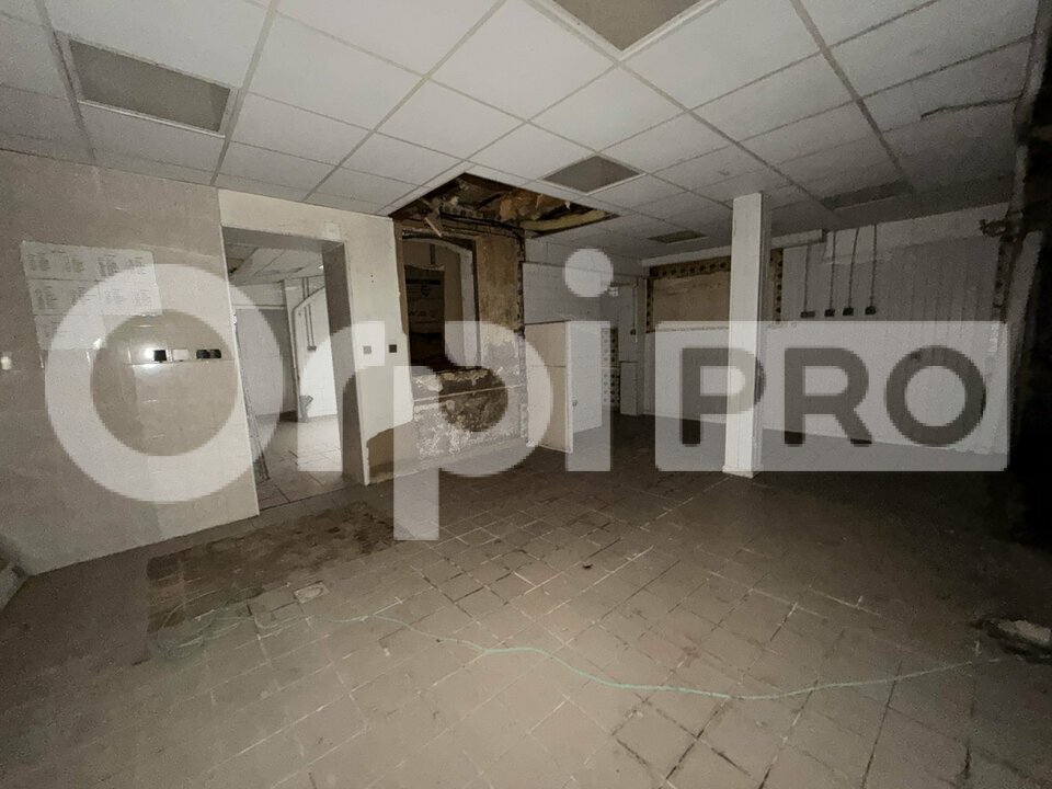 Le rez-de-chaussée comprend un local commercial d'environ 30 m² bénéficiant d'une double vitrine, une arrière-cuisine, des WC, ainsi qu'un laboratoire d'environ 80 m² équipé de chambres froides, anciennement exploité en boulangerie.