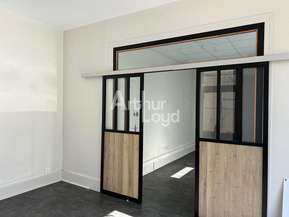 Composition : Entrée sur open space, bureau avec cloison coulissante, WC avec point d'eau et chaudière, accès communs sur l'immeuble desservant autre partie : 3 bureaux dont deux accès sur cour avec porte donnant sur passage donnant sur la place (possibilité d'usage d'habitation). Deux grandes caves en sous-sol : saines, PC et éclairage.