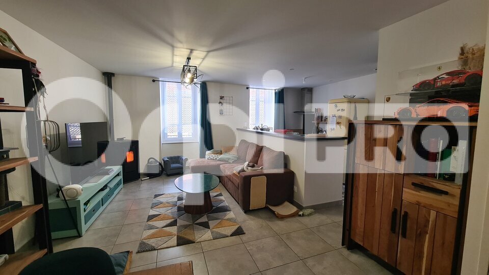 Un appartement T3 de 73 m², situé au-dessus du local commercial, avec séjour et deux chambres séparées, loué 7 800 Euros TTC/an.