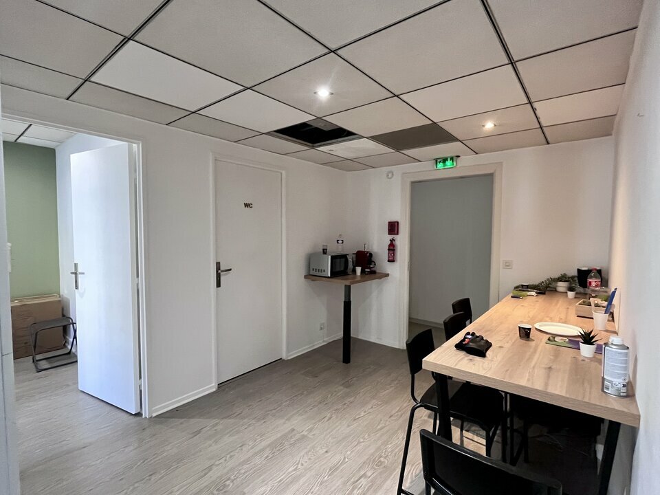 Dans immeuble récent aux parties communes agréables, BUREAUX de 130m² en bon état général ayant deux entrées palières, composés d'un espace accueil, de 7 bureaux individuels, d'une salle de réunion, d'un espace archives et de sanitaires privatifs.