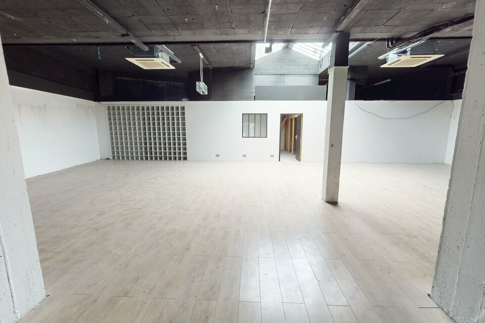 Locaux commerciaux de 368m2, accès de plain-pied par deux vitrines, belle hauteur sous plafond.