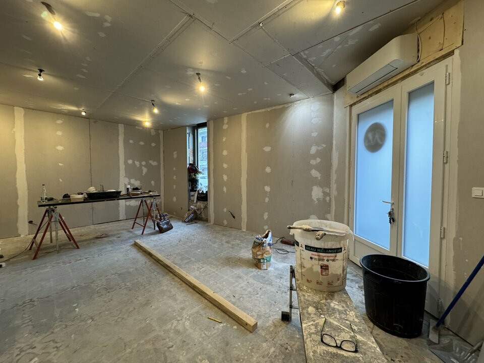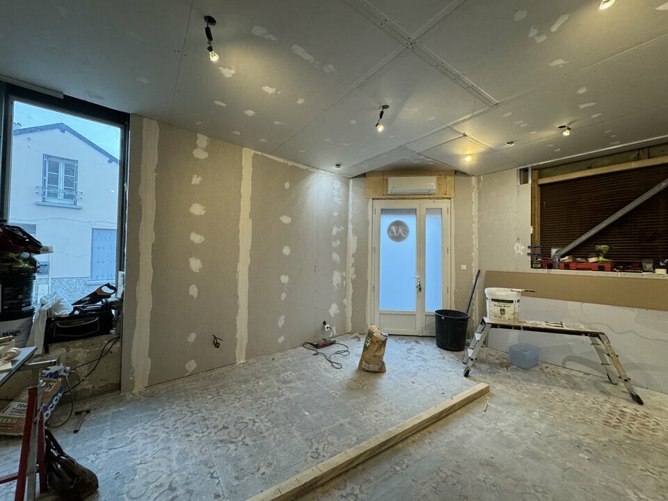 Le local dispose d'une surface de vente de 35 m², d'une pièce annexe accessible par quelques marches, de sanitaires avec lavabo et de deux caves carrelées en sous-sol, offrant un espace de stockage complémentaire.