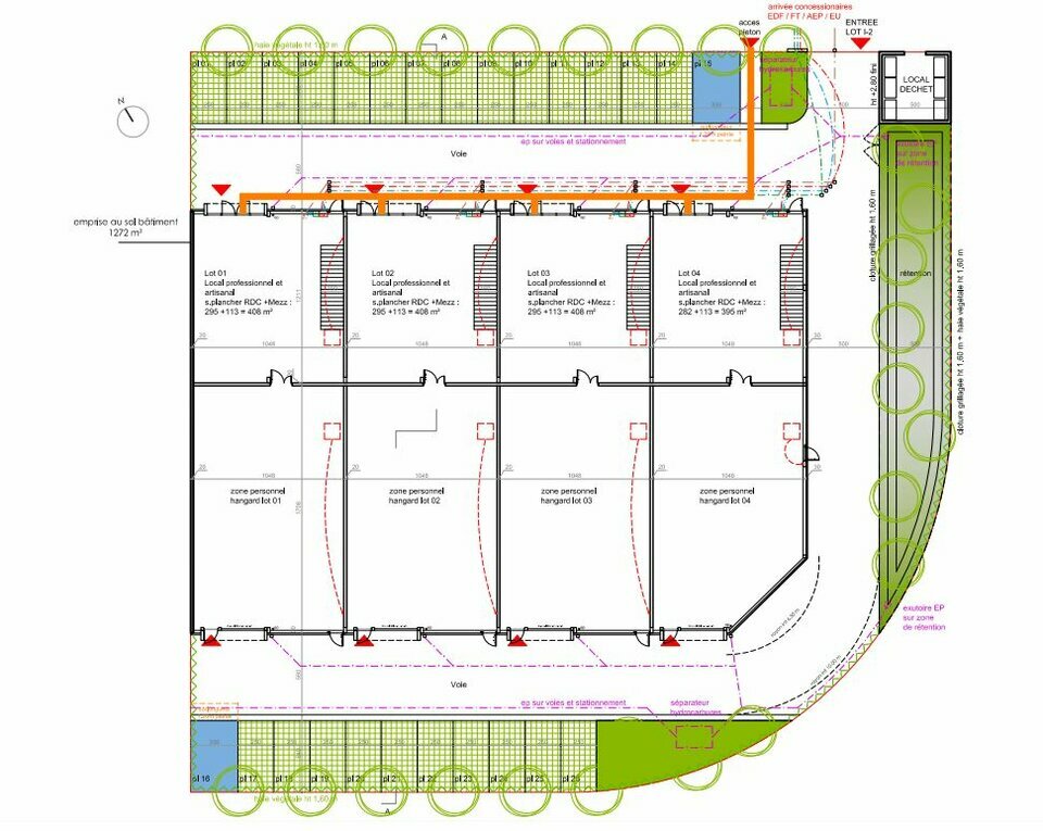 Le bâtiment comprend 3 lots de 408 m² et 1 lot de 395 m²
