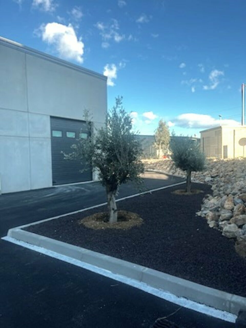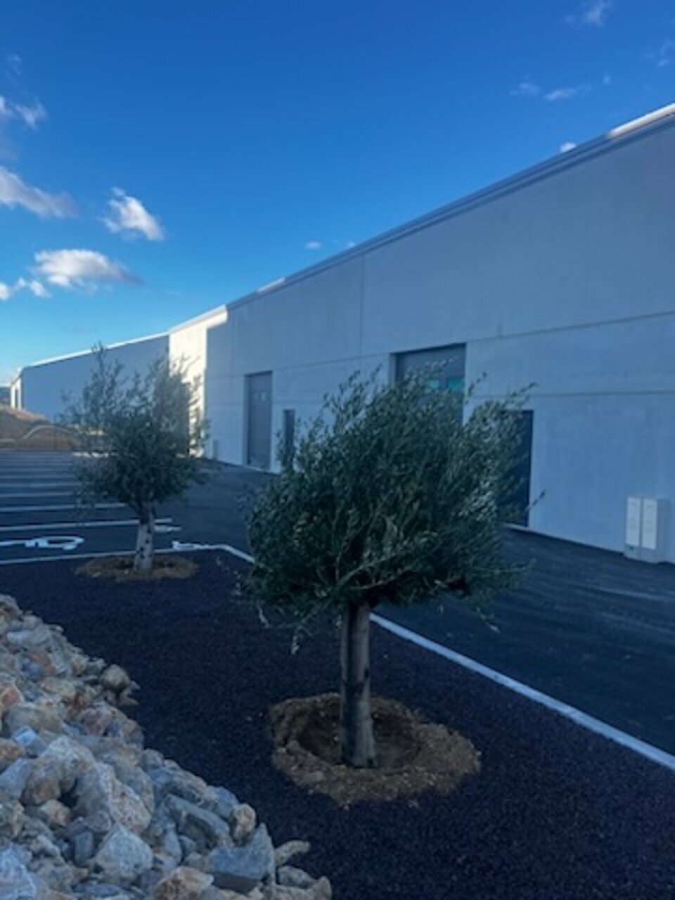 Places de stationnement à l'avant et à l'arrière du bâtiment