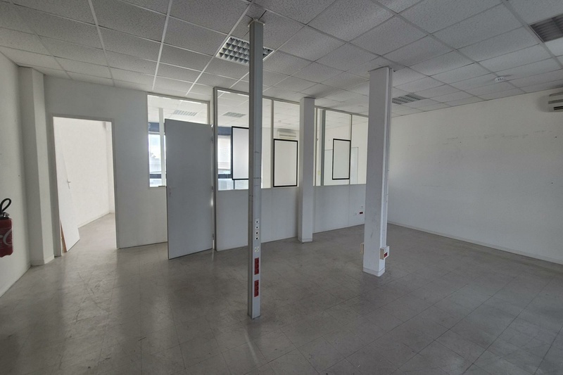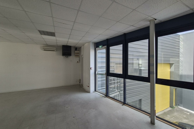 À louer, ensemble immobilier à usage professionnel combinant bureaux et espace de stockage, idéal pour une activité tertiaire avec besoins logistiques.