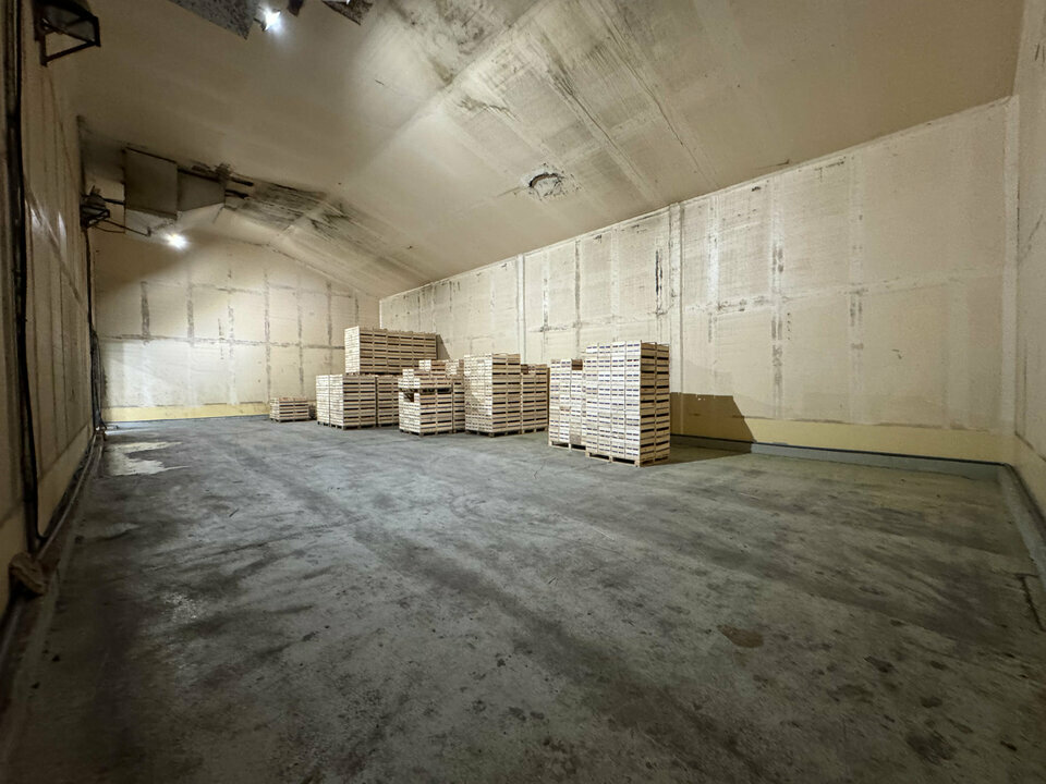 Une première partie en structure simple peau comprend un espace de stockage ainsi qu'une chambre froide. La seconde partie est entièrement réfrigérée et dispose de plusieurs chambres froides ainsi que de quais de chargement avec portes sectionnelles, facilitant les opérations logistiques.
