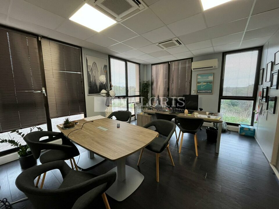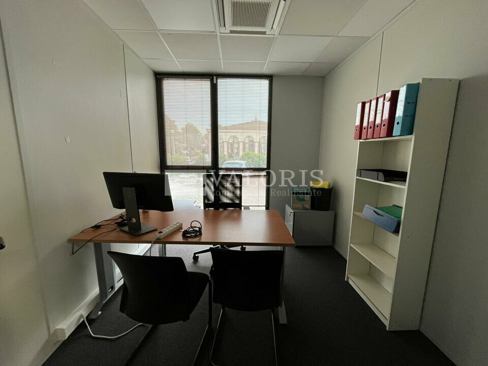 L'espace en rez-de-chaussée est composé d'un bel espace d'accueil, de plusieurs bureaux cloisonnés semi-vitrés, d'une grande salle de réunion ainsi que d'une cuisine, offrant un cadre de travail ergonomique et confortable. Les espaces extérieurs, très bien entretenus, apportent un véritable atout pour les pauses déjeuner, tandis que l'accès PMR garantit une accessibilité optimale.