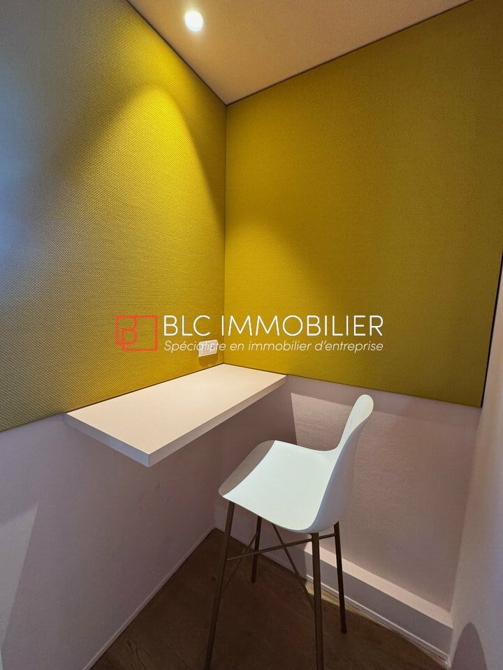 L'espace comprend un accueil soigné, ainsi qu'un espace ouvert. Deux cabines téléphoniques insonorisées et une salle de travail principale, modulable grâce à une cloison coulissante, offrent une flexibilité parfaite pour différentes configurations professionnelles, le tout équipé de matériel moderne et performant. Possibilité de location de salle de réunion à la journée.