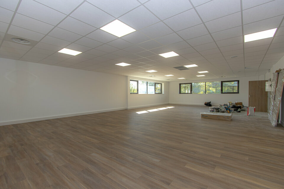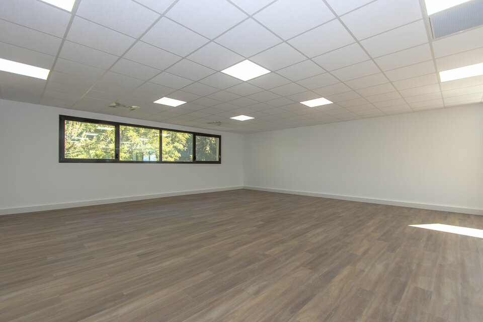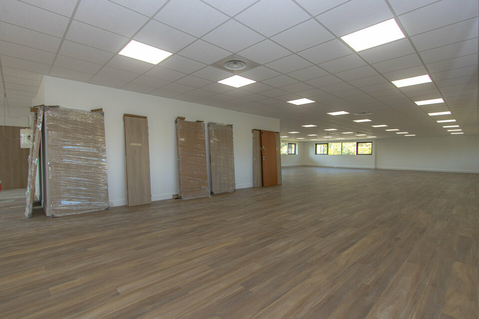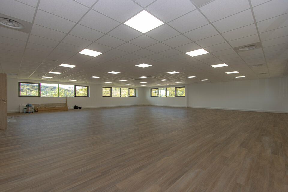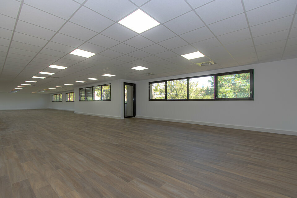 Nous vous présentons une surface de 134m2 à location entièrement rénovée. Les bureaux constituent la deuxième partie du premier étage, l'espace est très lumineux et dispose d'une petite terrasse extérieure. Un curage complet a été réalisé pour les parties communes et les espaces de bureaux. Les espaces sont pour le moment présentés en open-space mais peuvent être aménagés avec des espaces cloisonnés. Les WC se trouvent dans le hall. Chaque étage dispose de son espace sanitaire. Les bureaux sont accompagnés d'environ 5 places de parkings. Ils sont situés au sein d'un parc de bureaux arboré. Des tables de pique-nique extérieures sont mises à la disposition des locataires. Le site est clos et sécurisé par un portail réglé sur horloge. Les locaux se trouvent au coeur du parc d'activité de la Duranne et à proximité des arrêts de bus. La D9 est à 2 minutes en voiture, la gare TGV à 9 minutes et l'aéroport Marseille Provence à 16 minutes.