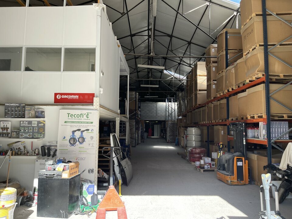 Dans un site fermé et sécurisé, cet entrepôt offre un bel espace extérieur permettant du stockage.