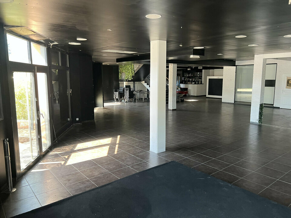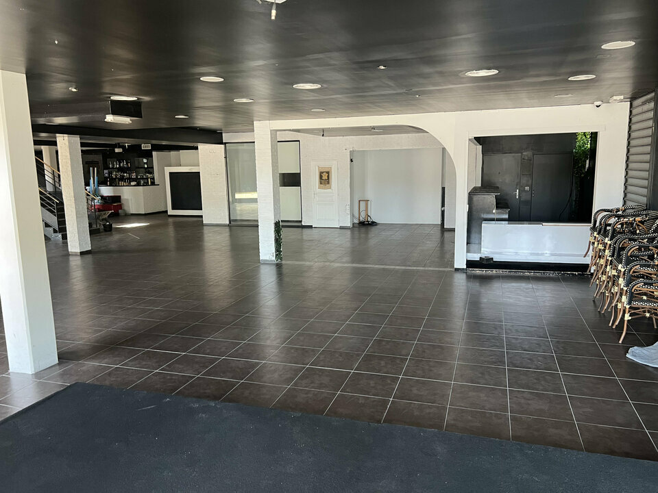 La surface en rez-de-chaussée offre environ 513 m², avec une possible division dès 200 m². L'ensemble est complété par une terrasse de 163 m², particulièrement attractive pour une activité de restauration ou de brasserie. Plus de 300 places de parking se trouvent autour du site.