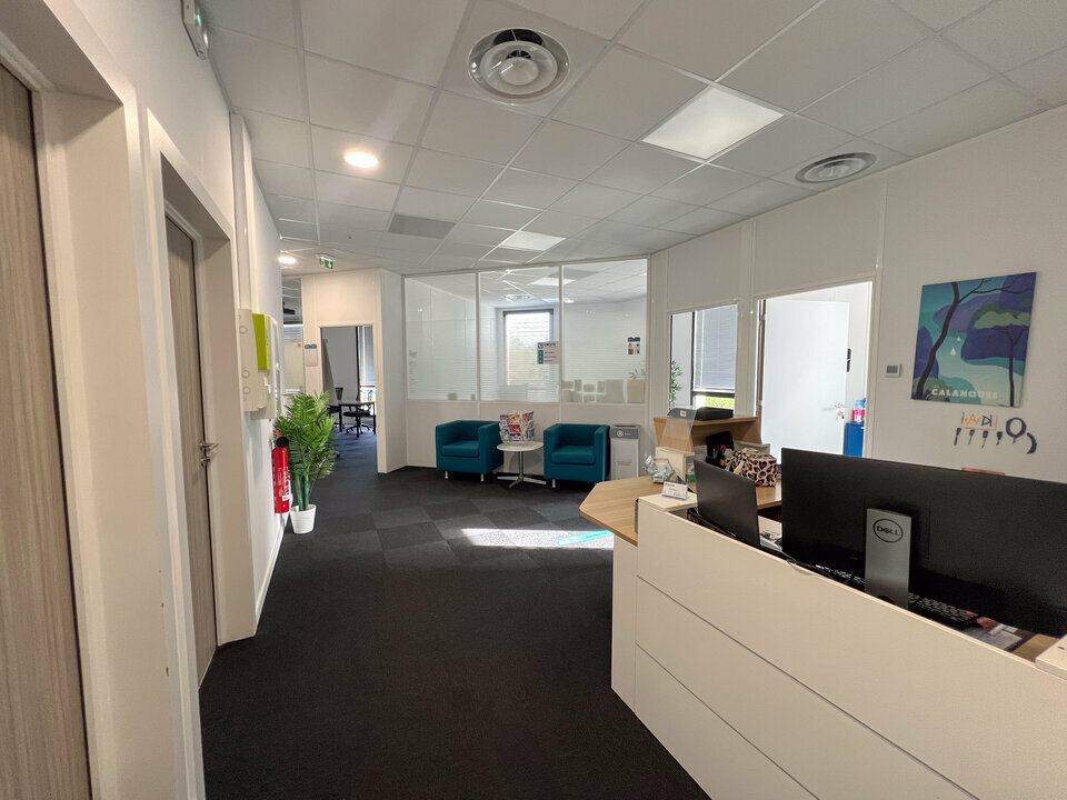 Installé au sein d'un ensemble professionnel, le bien développe 480 m² composés de plusieurs bureaux cloisonnés, d'un espace d'accueil, d'un réfectoire, ainsi que de places de stationnement dédiées. Les volumes permettent d'accueillir différents usages tertiaires dans un environnement organisé et opérationnel.