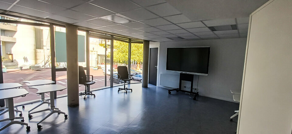 Au coeur du centre-ville en face de la Mairie et au pied du tram, au sein d'un immeuble de bureaux en structure béton et vitré, un beau plateau de bureaux d'environ 761 m², réparti sur deux niveaux.