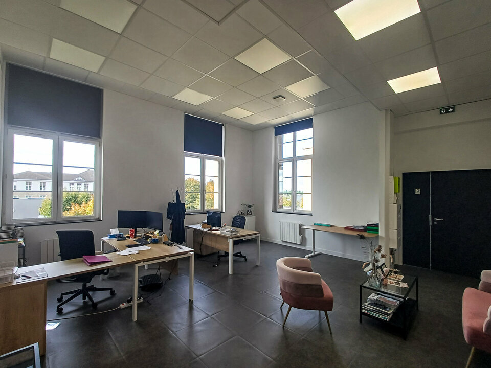 Au 2ème et dernier étage d'un immeuble de bureaux, un très beau plateau d'environ 123 m² (quote-part des parties communes incluse), entièrement rénové et aménagé, comprenant un grand bureau d'accueil, 3 beaux bureaux, une kitchenette et un sanitaire PMR privatif.