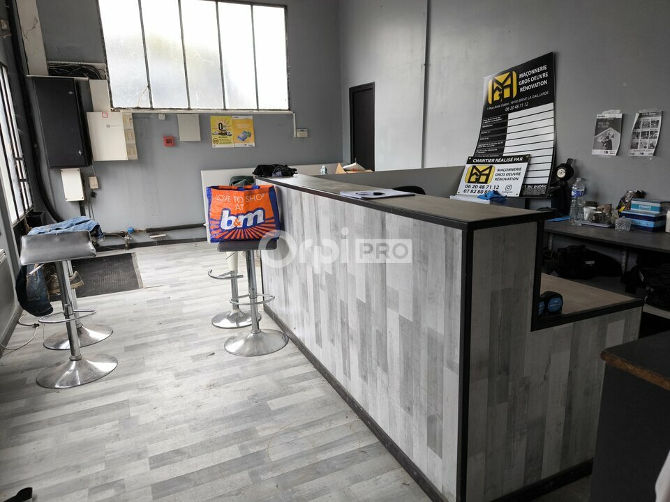 Composition: entrée, 1 bureau, 1 bloc sanitaire wc et douche, le reste en dépôt Bureau chauffage électrique, le dépôt sans chauffage. Parking sur le devant du bâtiment, sur le côté et l'arrière