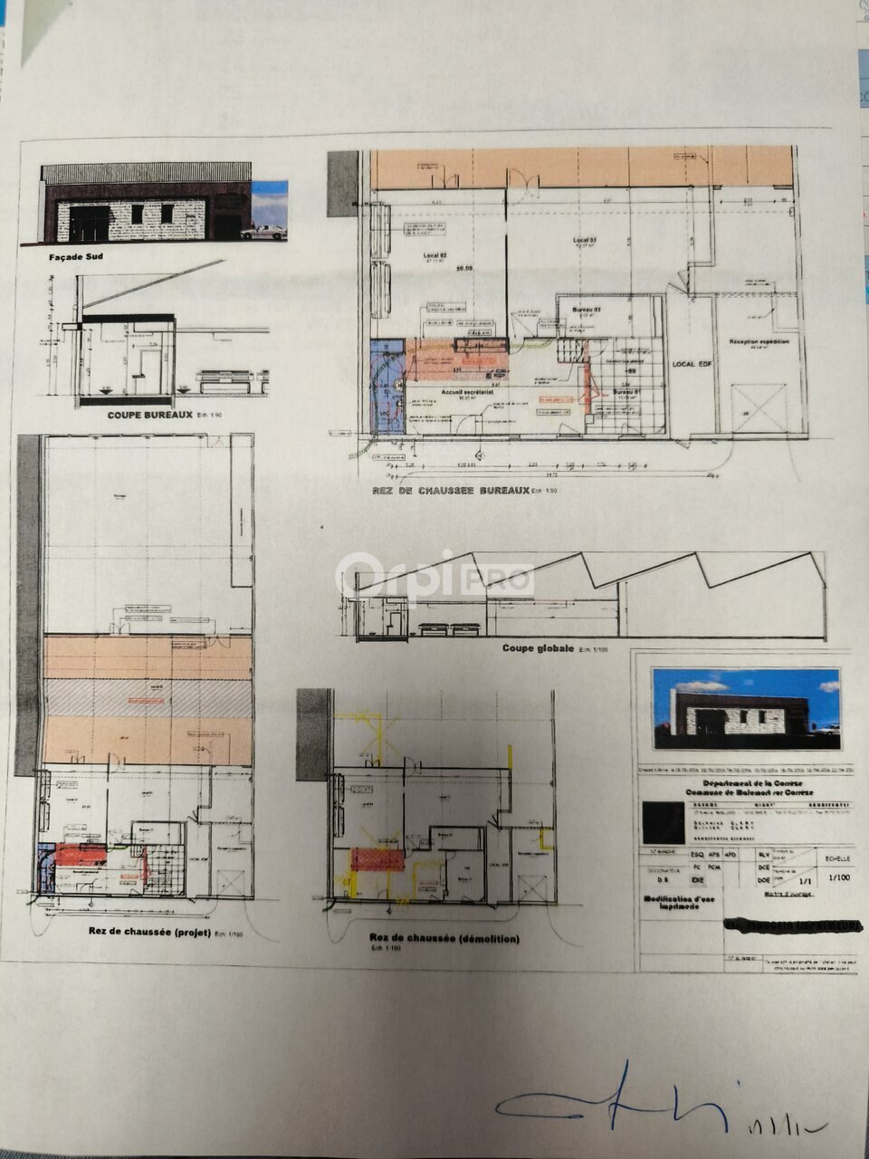 1. Sur la partie avant: un accueil secrétariat, un bureau, un local sanitaire, un local EDF, un local réception expédition
