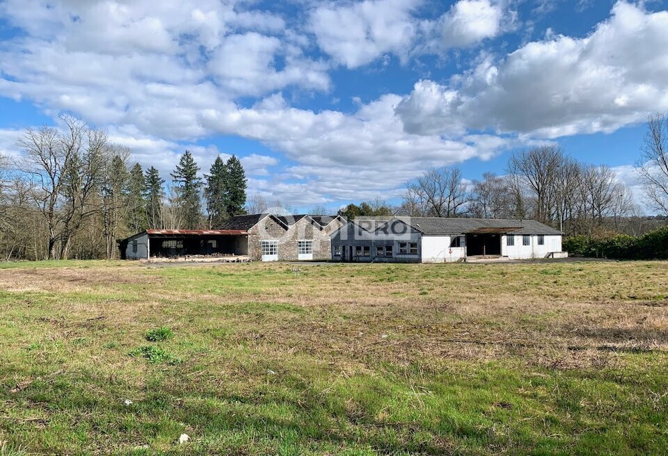 ensemble immobilier composé de deux bâtiments, un en pierre couvert en ardoises, un béton couvert en tôles fibrociments avec espaces bureaux et ateliers. Sur une parcelle de 5800 m² environ.