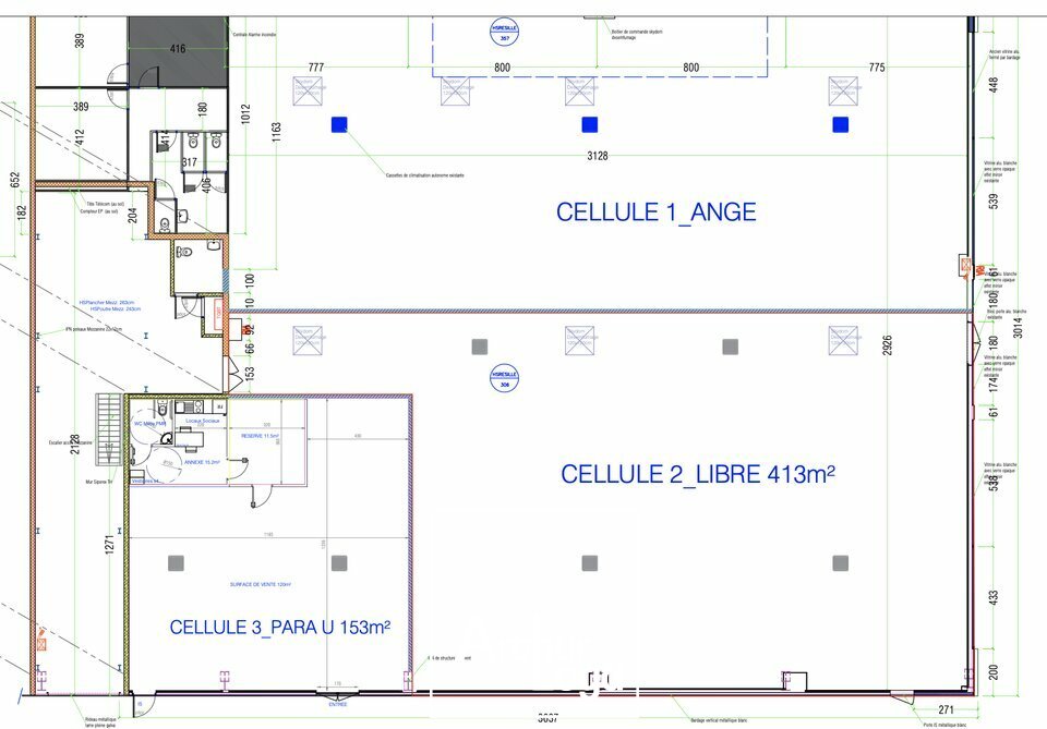 La cellule est livrée complètement aménagée (climatisation réversible par cassettes, parquets flottants, faux plafonds)