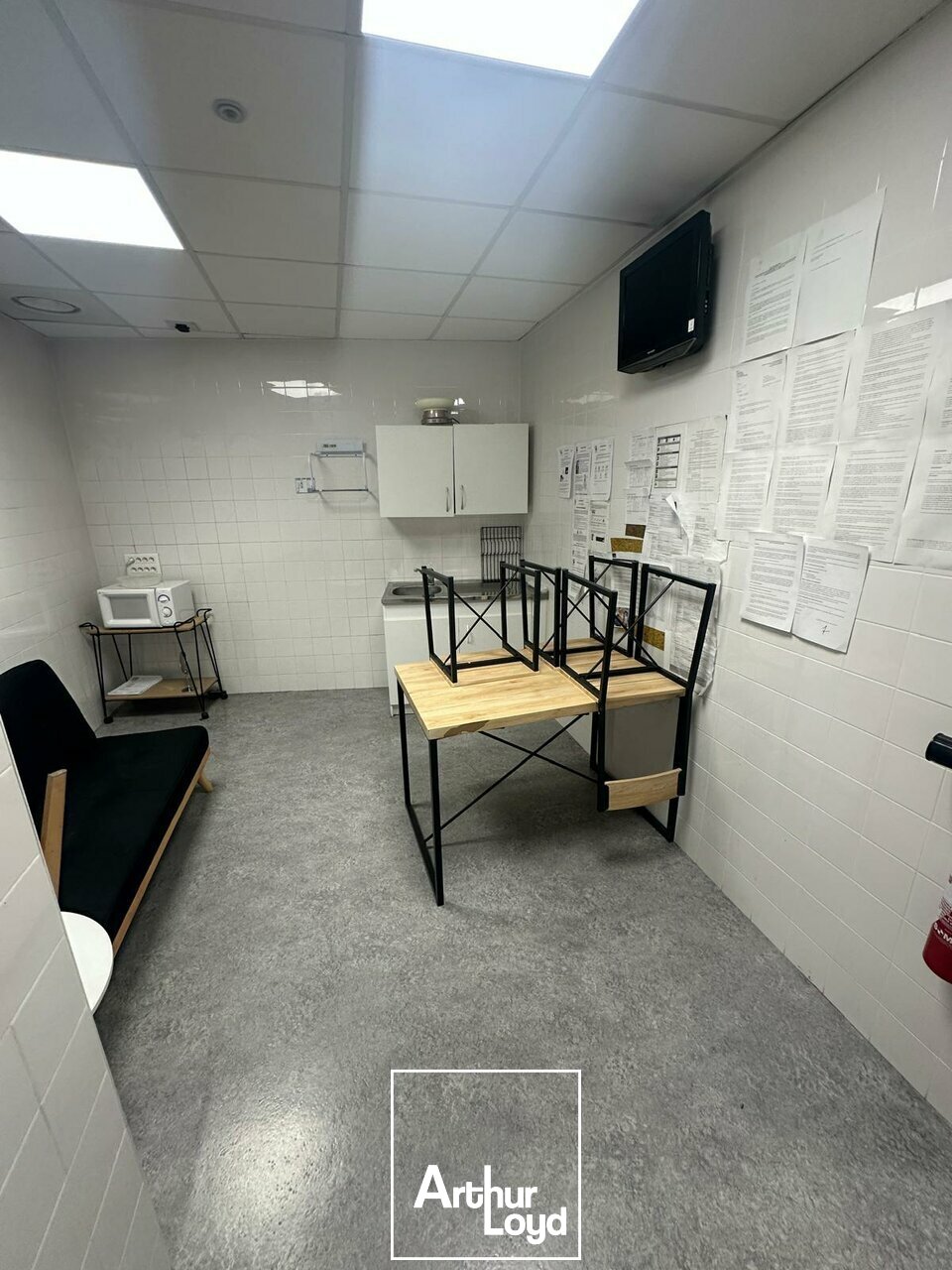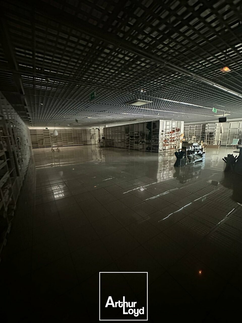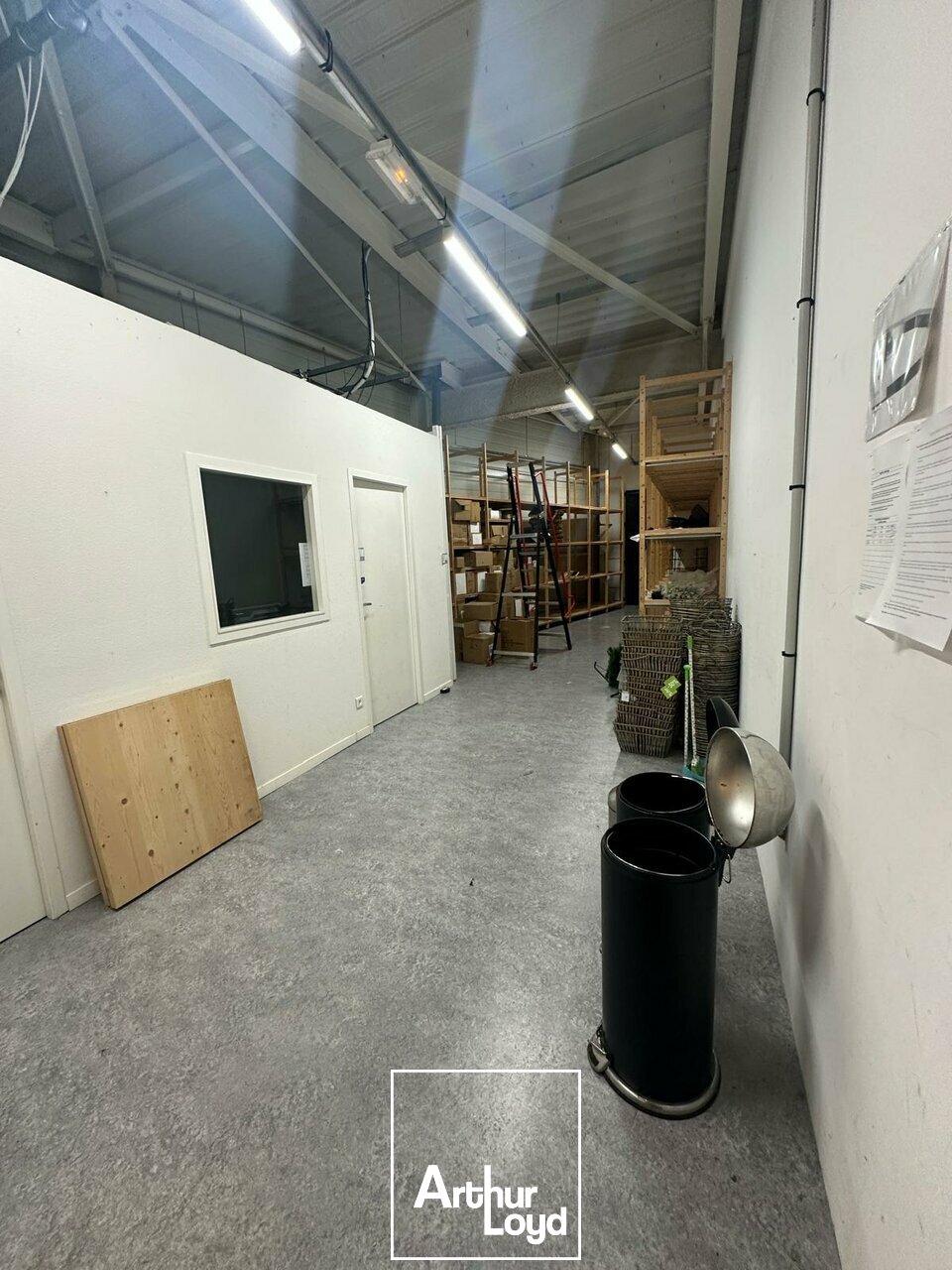 Une mezzanine offre un espace pour le stockage ou l'aménagement de bureaux.