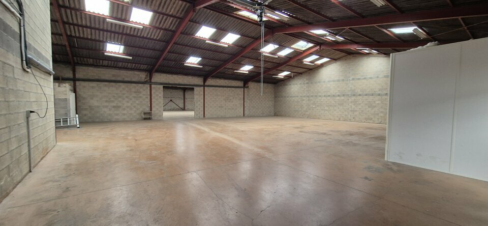 À l'arrière, deux entrepôts communicants totalisant 900 m² et bénéficiant chacun d'une porte sectionnelle et d'une belle hauteur, idéal pour le stockage de marchandises, de matériel ou l'organisation de votre activité logistique.