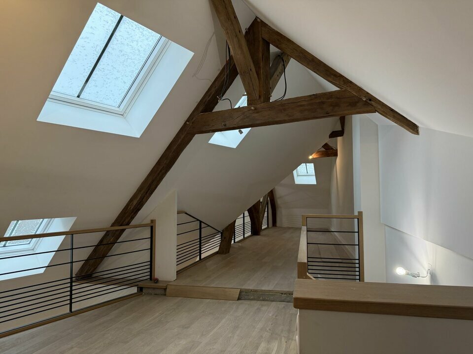 Vous bénéficiez d'un premier plateau de bureaux de 75,74 m² (73,48 m² Carrez), offrant un espace de travail spacieux et fonctionnel. Depuis ce niveau, un accès direct mène à une mezzanine d'une superficie totale de 46,09 m² (33,66 m² Carrez).