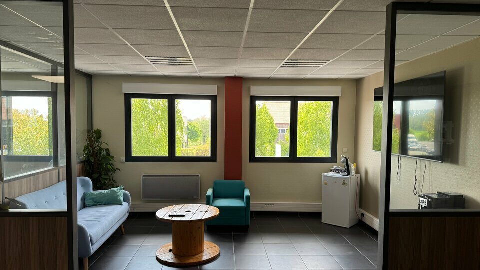 Deux surfaces de bureaux en R+1 dans un ensemble immobilier situé à Brillon, à proximité de la Zone d'Activité Economique de Sars et Rosières et de l'Autoroute A23.