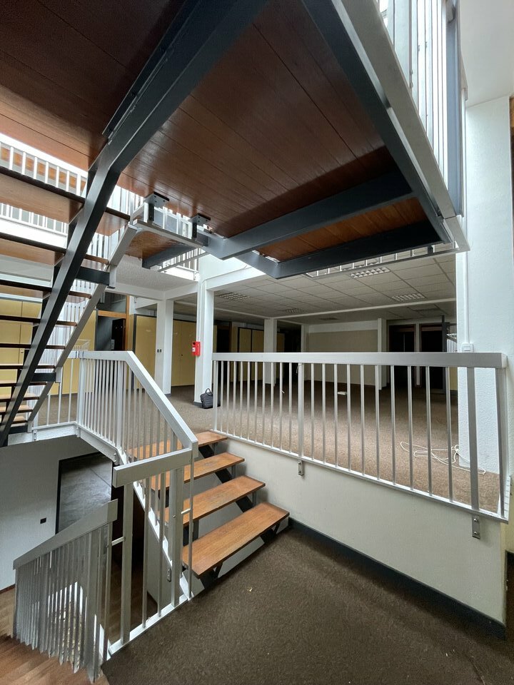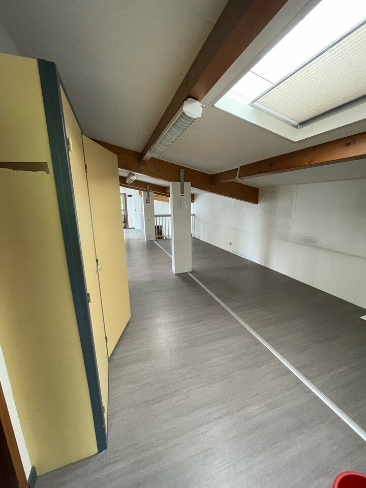 A l'étage 4 bureaux cloisonnés pour 124 m².