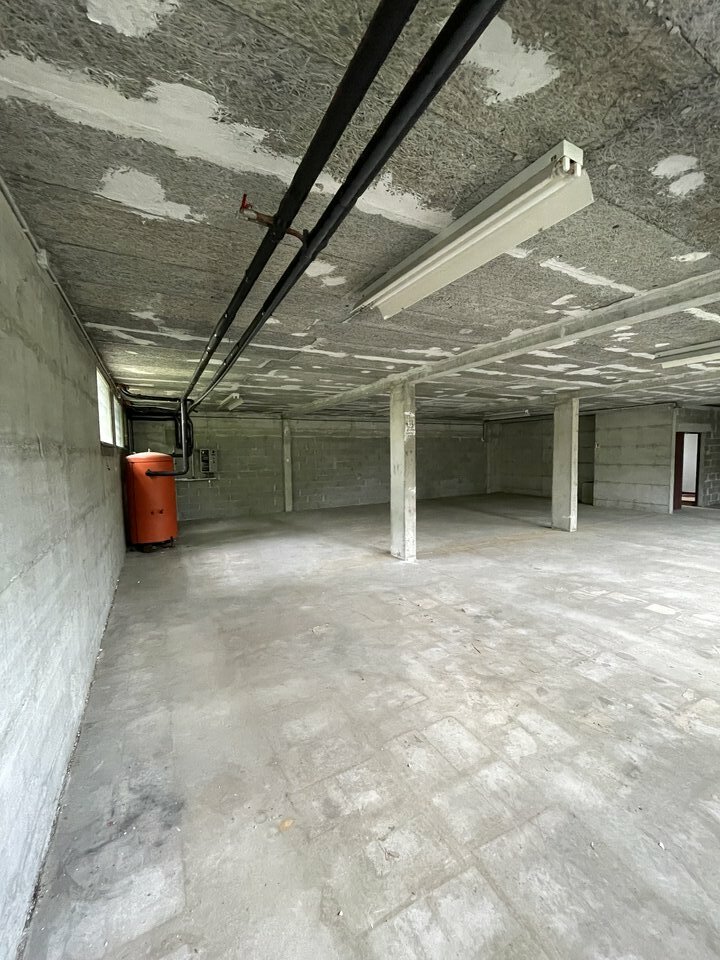 Plusieurs pièces avec ouvertures (châssis fixes), porte de garage, local technique, sanitaires, pour une contenance de 409m².