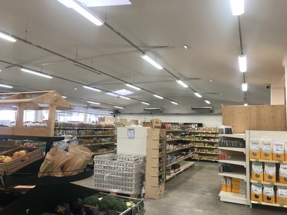 Local commercial avec surface de vente 592 m², locaux sociaux, bureaux, et zone de stockage pour une superficie totale de 844, 04 m², accès livraison