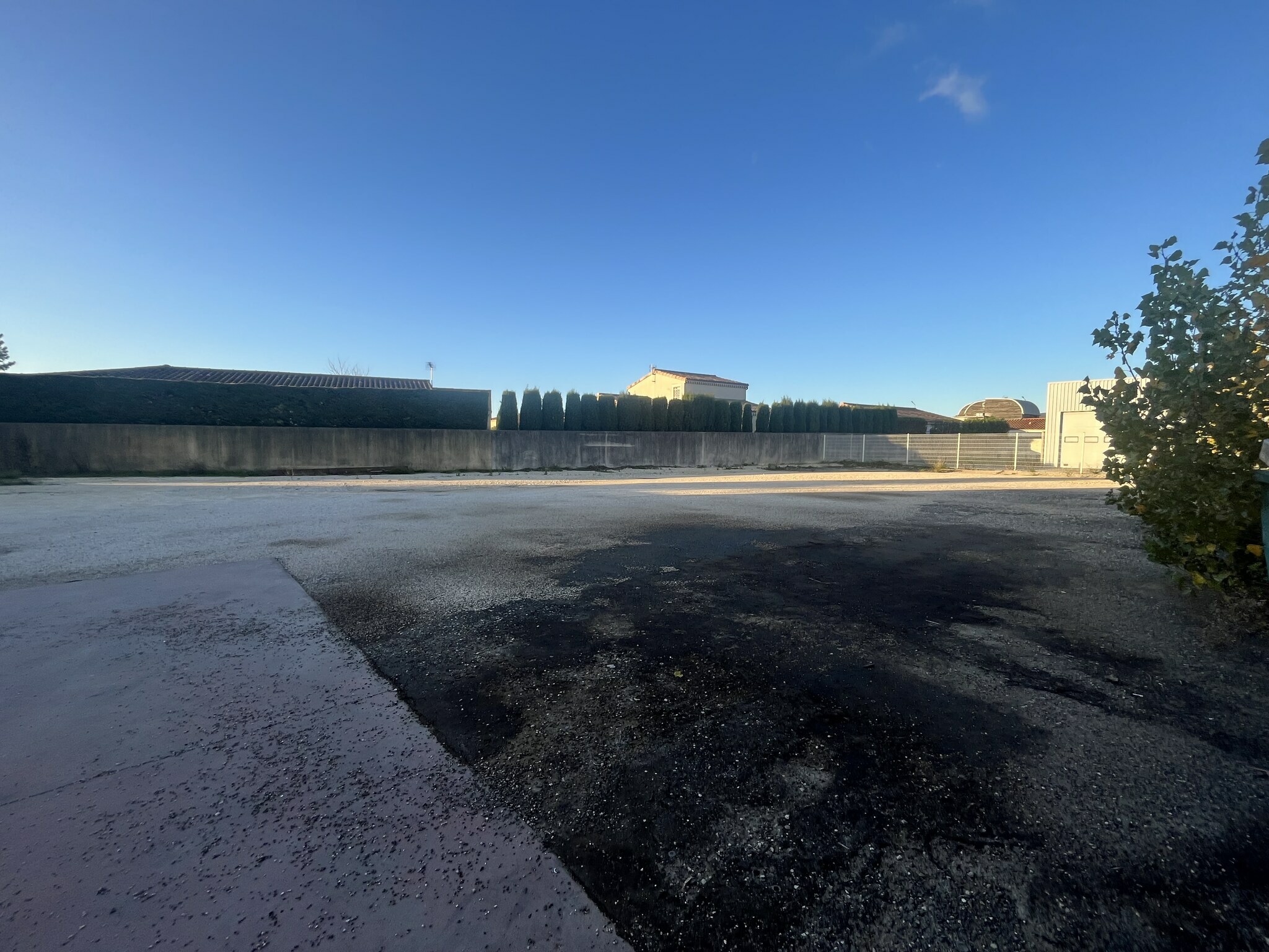 Une partie du foncier est close, avec aire de lavage, deux portails, et une partie libre pour les clients.