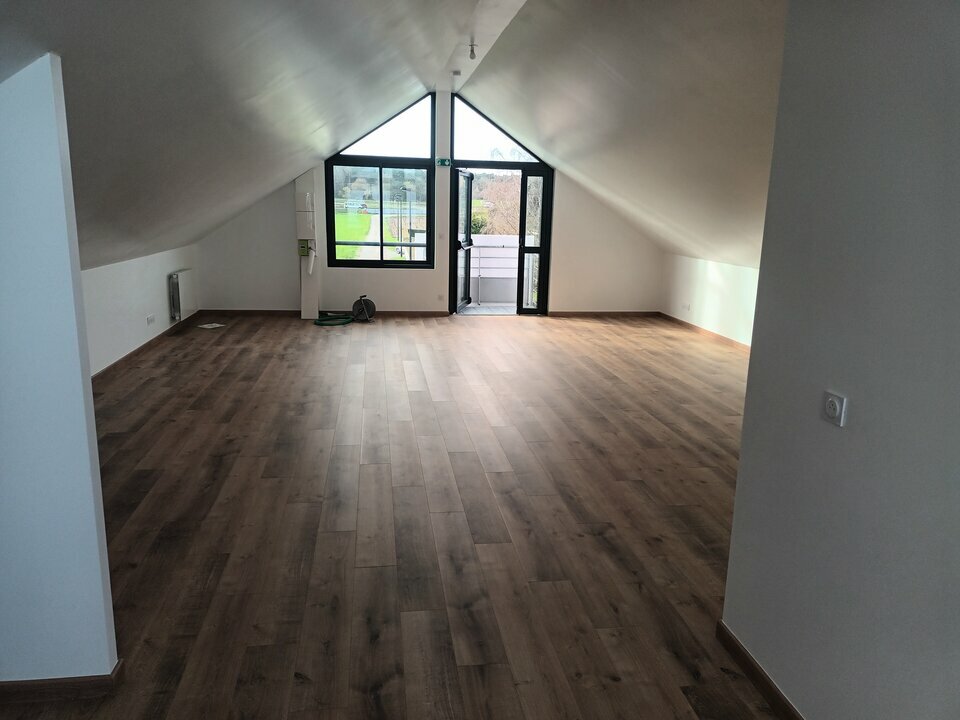 Au pied de l'A13, au 1er étage d'un ensemble plus vaste, un plateau de bureaux d'environ 52 m², entièrement refait à neuf (2025), comprenant une grande pièce, une kitchenette, une salle de douche et un sanitaire.