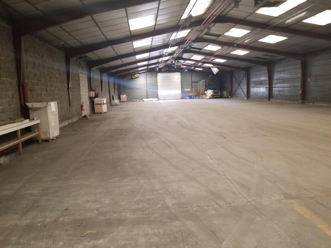 Dans un ensemble plus vaste, un entrepôt d'environ 1 400 m², accessible par une grande porte sectionnelle électrique de L 4 x H 5.5 m.