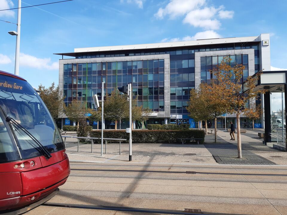 Tramway et parkings publics au pied de l'immeuble, proximité accès autoroutes