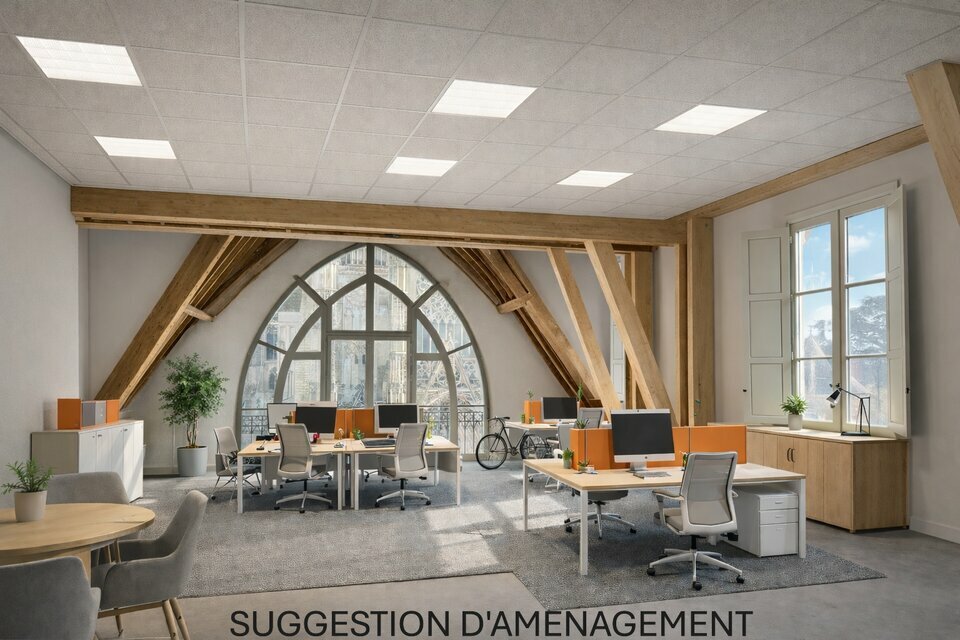 Tours centre, bureaux neufs d'exception à louer, livrés bruts fluides en attente. Emplacement central de qualité, dans un immeuble de 1 325 m², une surface de 1 058 m² disponible en plusieurs lots. Divisible à partir de 203 m².
