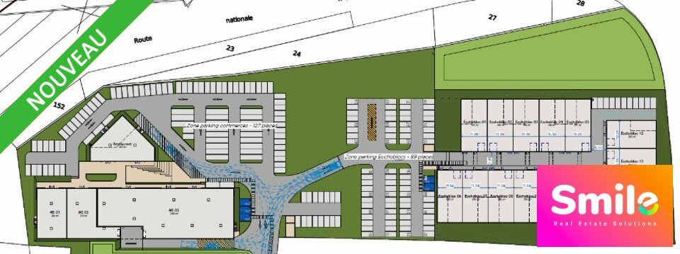 La partie activités nommée "Ecchoblocs" représente 15 locaux d'activités répartis dans 3 bâtiments.