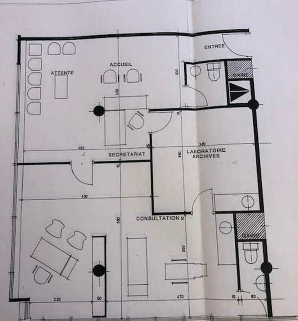 - Agencement fonctionnel : salle d'attente, secrétariat, bureau / salle d'examen, salle de repos avec coin cuisine.