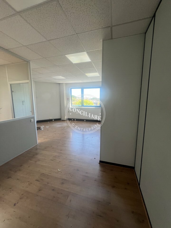 LABEGE INNOPOLE LOCATION BUREAUX 102M2 - A quelques minutes à pieds du futur métro, du cinéma, des commerces, des restaurants et des axes routiers, bureaux à louer au premier étage d'un immeuble rénové récemment. Le bureau est équipé en câblage informatique et climatisation réversible, parquet au sol, espace kitchinette, sanitaires commun + espace restauration. Parking sur site, libre immédiatement ! Contactez CONCILIARE IMMOBILIER au 05 61 44 60 02.