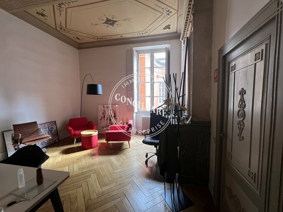 TOULOUSE HYPER CENTRE 184M2 - BUREAUX A LOUER. Au coeur du quartier St Goerges, venez visiter ces bureaux de 184m2 au second étage d'un immeuble de standing. L'adresse est prestigieuse, à proximité immédiate de la place Saint Georges, des commerces, des transports en communs et du parking Indigo. Les bureaux sont en excellent état, accueil, salle de réunion, plusieurs grands bureaux, kitchenette et sanitaires privatifs. Disponible en mars 2026, contactez nous pour plus de renseignements: 05 61 44 60 02.