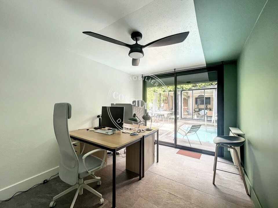 L'ensemble s'articule autour d'un patio d'une vingtaine de mètres carrés avec piscine. Possibilité de louer un parking en supplément. Locaux disponibles début 2026.