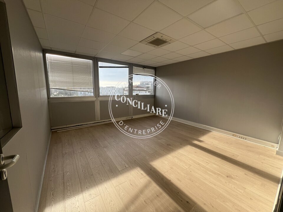 Accès direct à l'aéroport (5 min à pieds), axes routiers et transports en communs (tram + bus) bureaux à louer d'une superficie de 93m2 au 4ème étage d'un immeuble tertiaire.