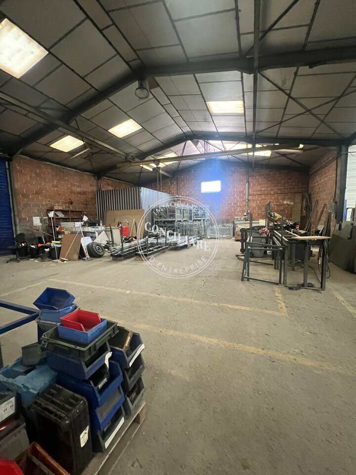 Sur une parcelle de 11300m2, le bâtiment est équipé de plusieurs ponts roulants, un quai de déchargement, compteur jaune, triphasé et fibre optique.