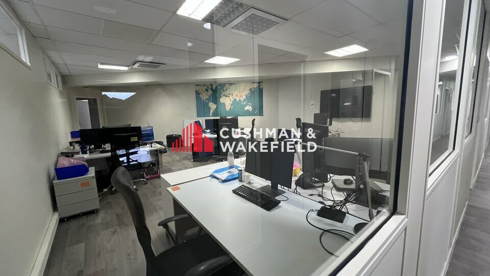 Les bureaux sont cloisonnés et climatisés, pavés LED en faux plafond.