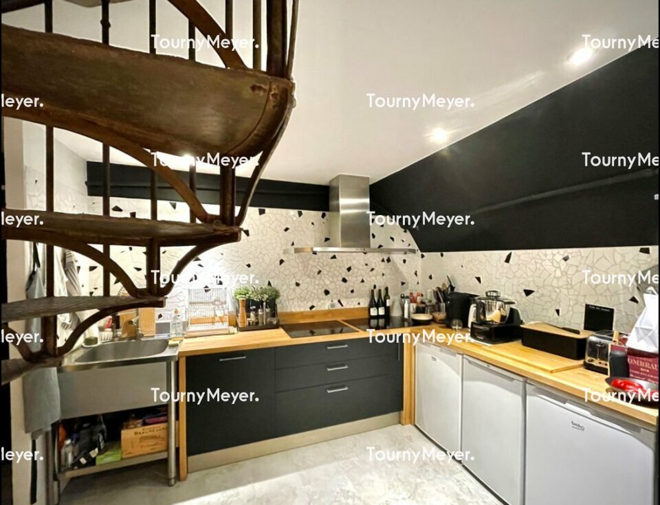 Cuisine ouverte toute équipée, esprit Loft, mezzanine, chauffage au sol, salle d'eau, sanitaires indépendants et cave 12m²