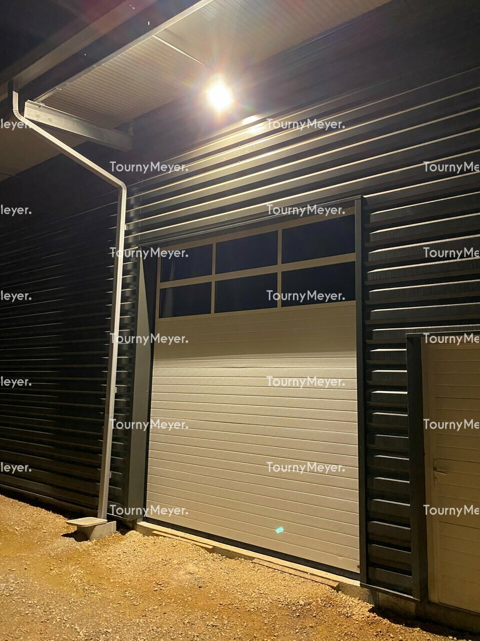Le bâtiment est équipé de portes d'accès et de 2 portes sectionnelles.